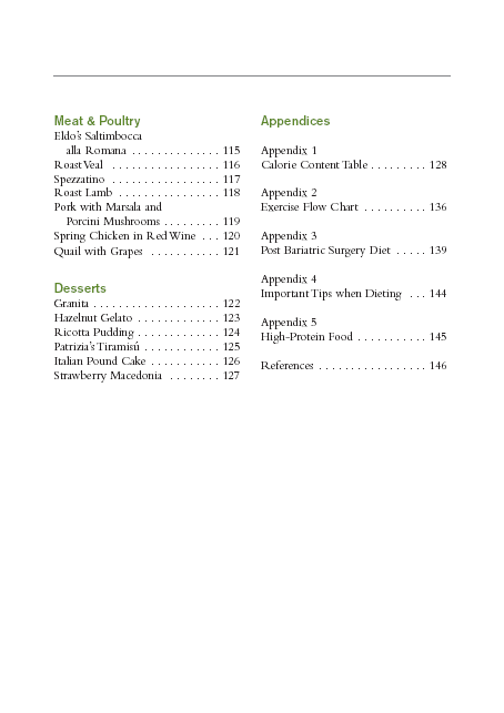 A common sense approach to weight loss using the principles of healthy eating inherent in the Italian daily diet. Nutrition, meal planning, portion control and other weight-loss strategies are discussed. Includes more than 50 of the author's own family recipes.