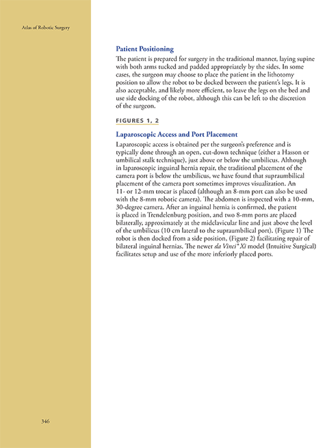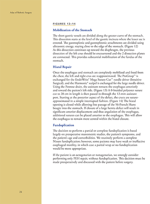 An accompanying video library comprises narrated surgical procedures, including port placement, patient positioning, and instrument selection. Both experienced surgeons and those young surgeons who are just beginning to experience using the surgical robot in their practice will find value in this atlas and video library combination.